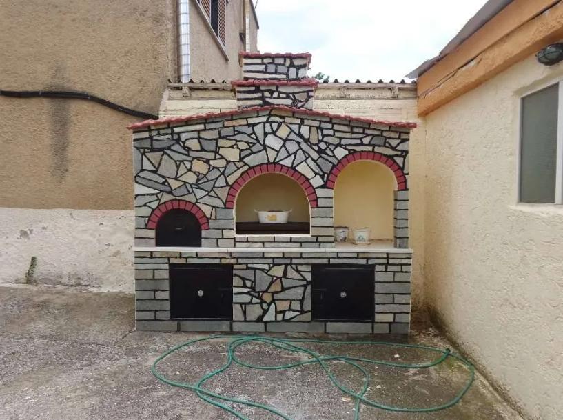 Διαθέτει,πολύ καλή ποιότητα κατασκεύης,κήπο με 28 ρίζες ελιές,κλειστό φούρνο-bbq,